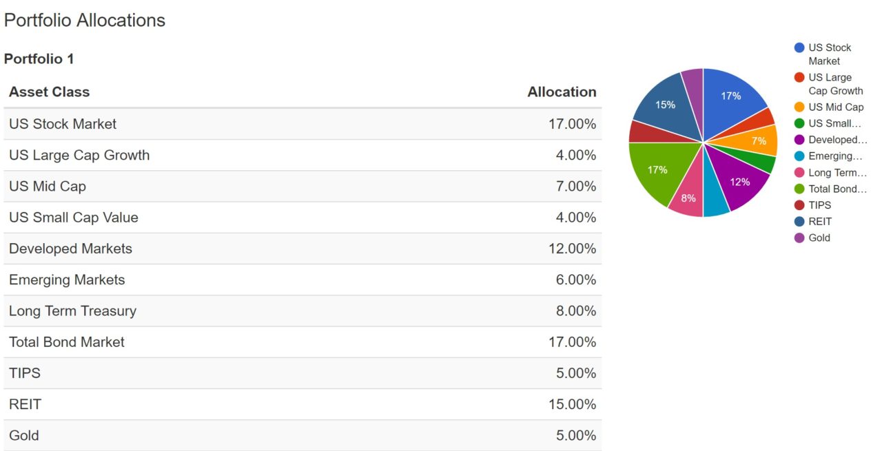 1. Portafolio Global. Este está basado en una Asignación Estratégica de Activos o (Strategic Asset Allocation). Para fines de simplificar he decidido llamarlo Portafolio Global. Compone la mayor proporción de mis inversiones internacionales con más del 75% del capital invertido. El mismo busca rentabilidad similar o superior al mercado global con poca volatilidad, implementado a través de la diversificación en diferentes clases de activos a nivel global. Los activos que lo componen y los porcentajes de capital asignados a cada uno se encuentran detallados más adelante.